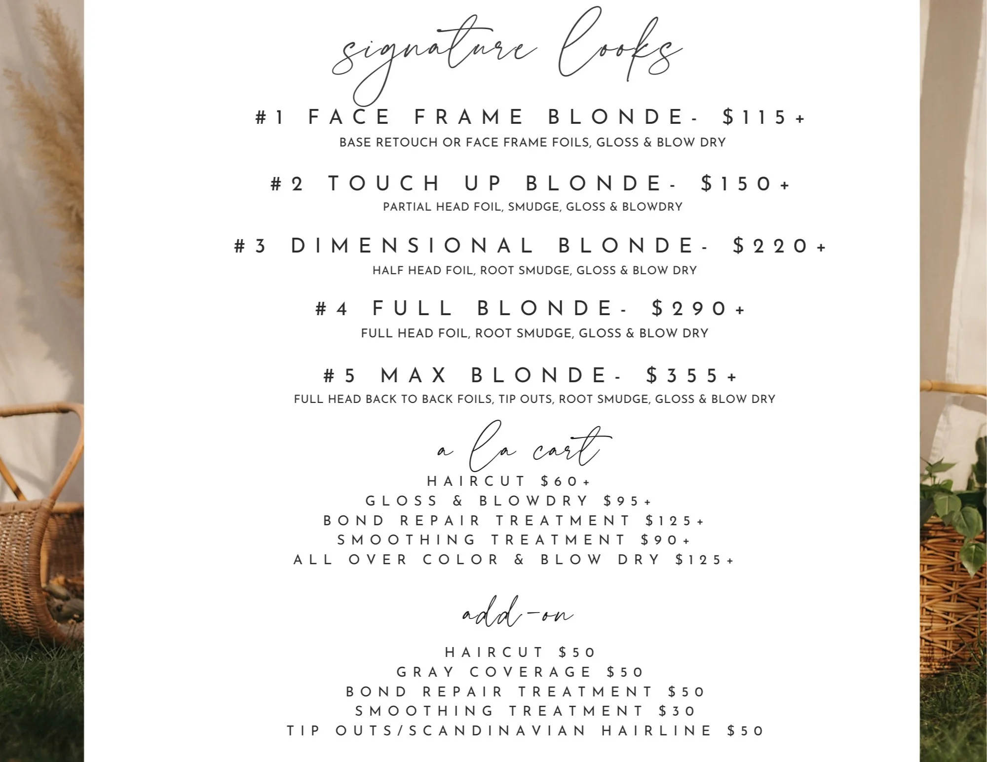 REFERENCE OUR SALON POLICIES PRIOR TO BOOKING!